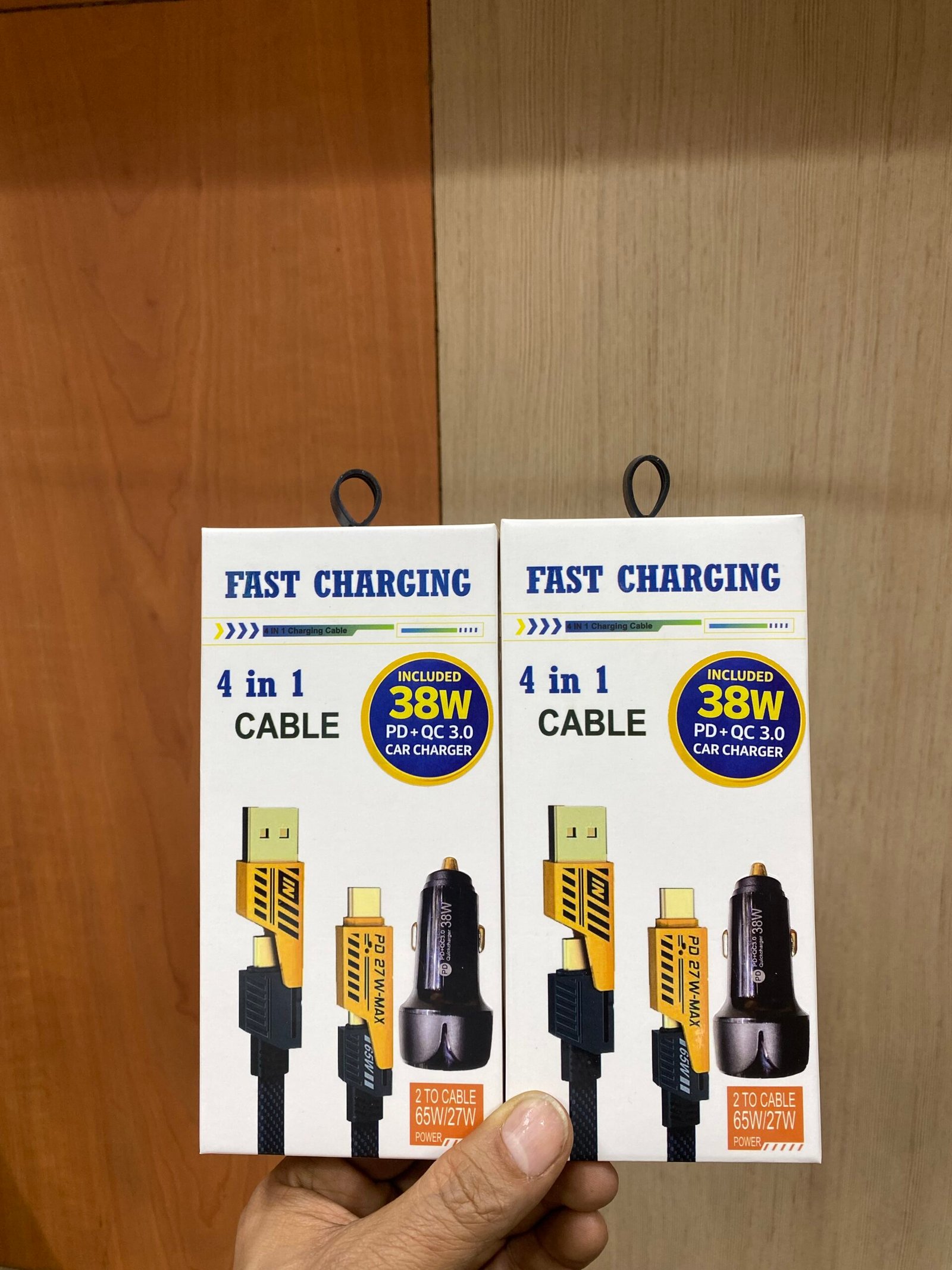 4 in 1 Fast Charging Cable with 38W PD + QC 3.0 Car Charger